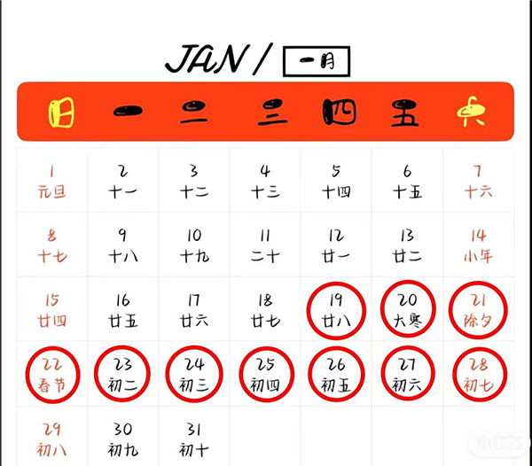 春节放假时间