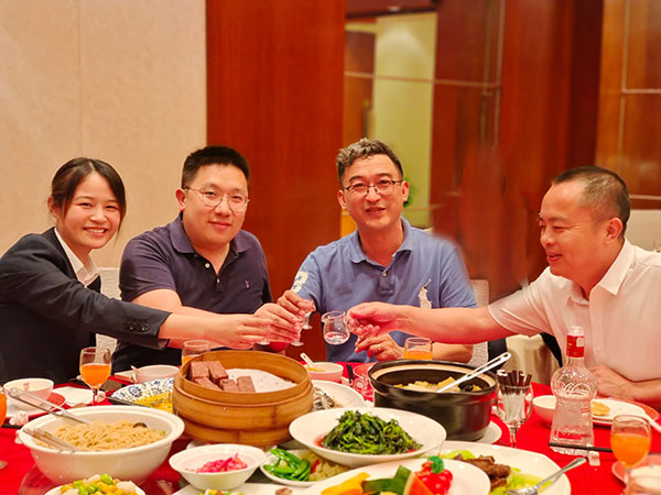交流会结束后,共进晚餐时光,大家相谈甚欢。分别诉说着个人在这个行业里的成长,以及遇到过的难题和趣事。还包括对这个行业的未来趋势,发表了一些个人观点,觥筹交错之间公司人员与配套商们还彼此表达了感激之情。