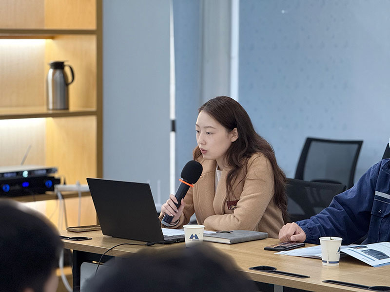 参观结束后,我司技术专工丁睿从产品分类、适用工况、产品特点和设备如何选型等方面一一为大家展开了介绍,并针对各位领导提出的问题,在会上进行了解答。