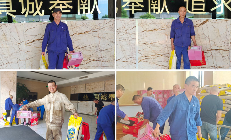 在慰问品发放现场,一份份礼品被整整齐齐地堆放着,各部门分别派了代表有序领取,场面十分热闹和喜庆。无论是象征团圆的月饼、还是象征丰收的水果和沉甸甸的大米,每一份都载满了深深祝福,寄托着公司对每一位员工的关爱。