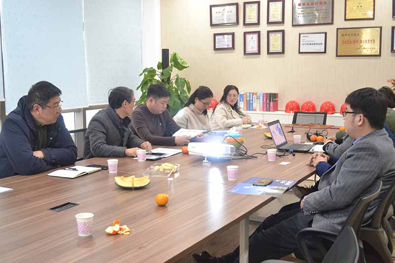 3月5日,杭州市节能协会秘书长包优祥、浙江安耐杰科技股份有限公司总经理助理许华丽、杭州倍捷科技有限公司总经理金磊、杭州三瑞机械有限公司总经理邢超、浙江匠心智联软件技术有限公司总经理王坚华前往杭州太阳成集团tyc9728净化设备股份有限公司进行走访交流。公司销售总监唐绍宏、销售总监助理彭欢、技术室主任朱影、研究院经理洪川和相关部门负责人员陪同参观并参加座谈交流。
