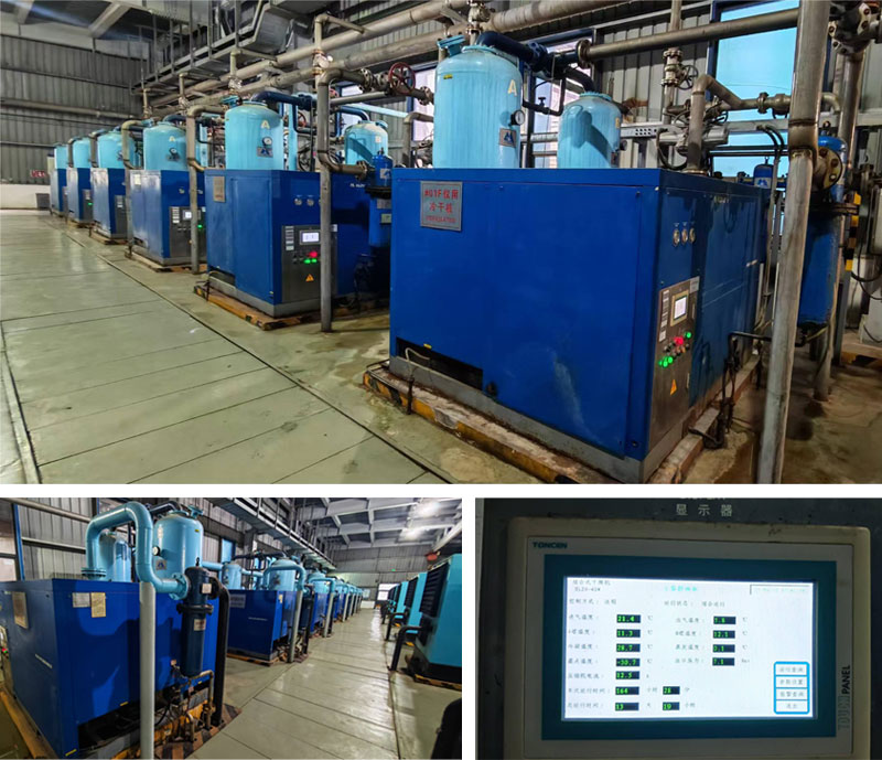 一期工程由我司提供的组合式低露点干燥机共计19台,冷冻式压缩空气干燥机与吸附式压缩空气干燥机相结合,能较大限度地发挥二者的优点,此设备已运行11余年,目前各方面性能依然非常稳定、可靠。