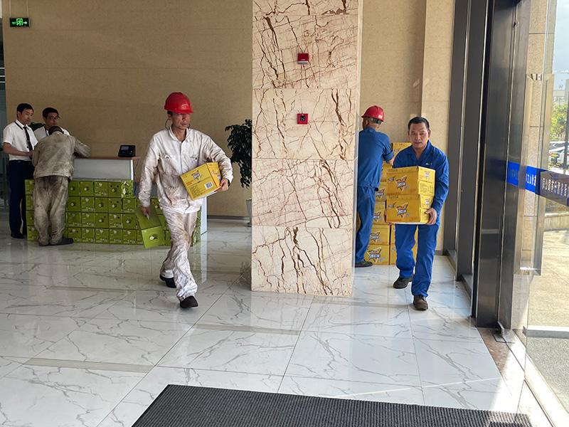 为此,7月22日下午,杭州太阳成集团tyc9728净化设备股份有限公司总务部成立了“送清凉小组”,开展了“高温慰问 情系一线职工”送清凉活动,对公司厂区内一线员工送去慰问品和公司的关爱。